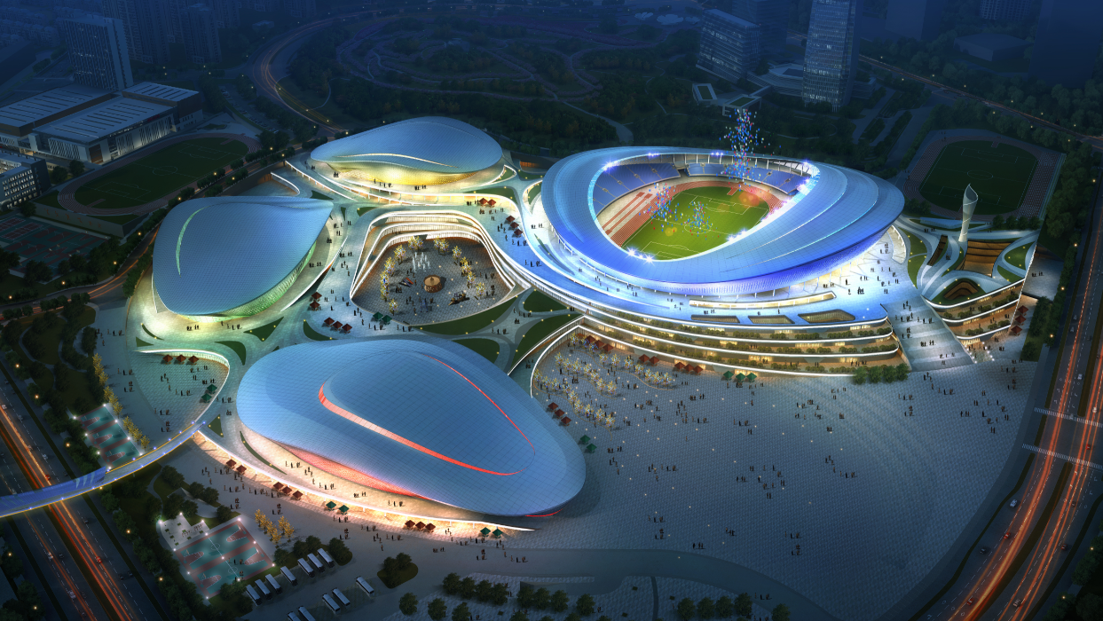 亞洲杯足球比賽場地建設項目總建筑面積約19.4萬平方米,其中鋼結構主要包括1座5萬座專業足球場及配套全民健身館,配套全民健身館包含1座多功能館,1座游泳訓練館。